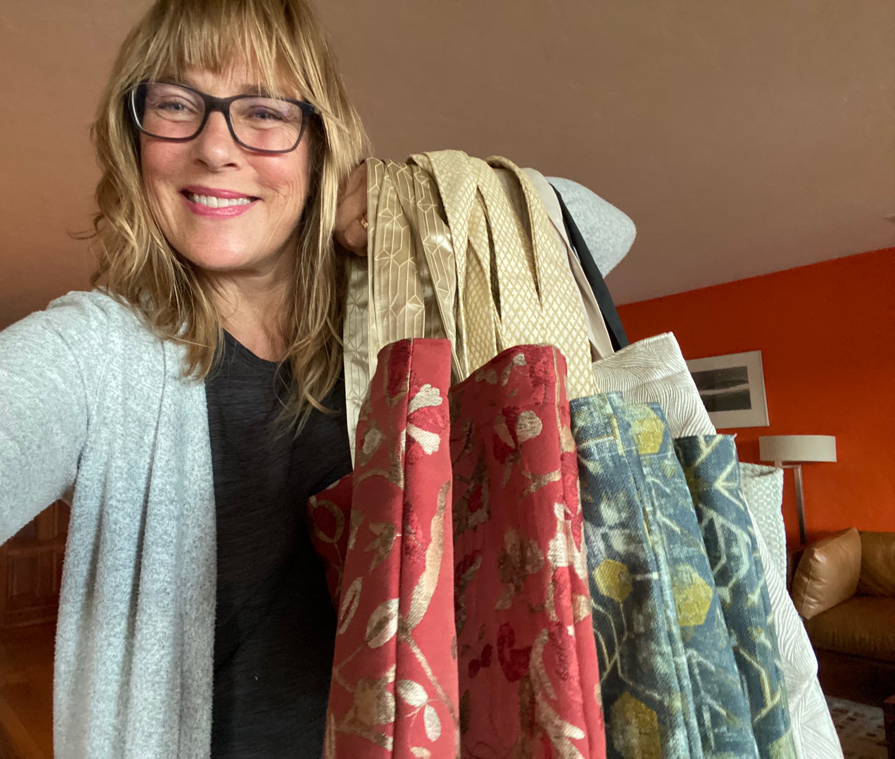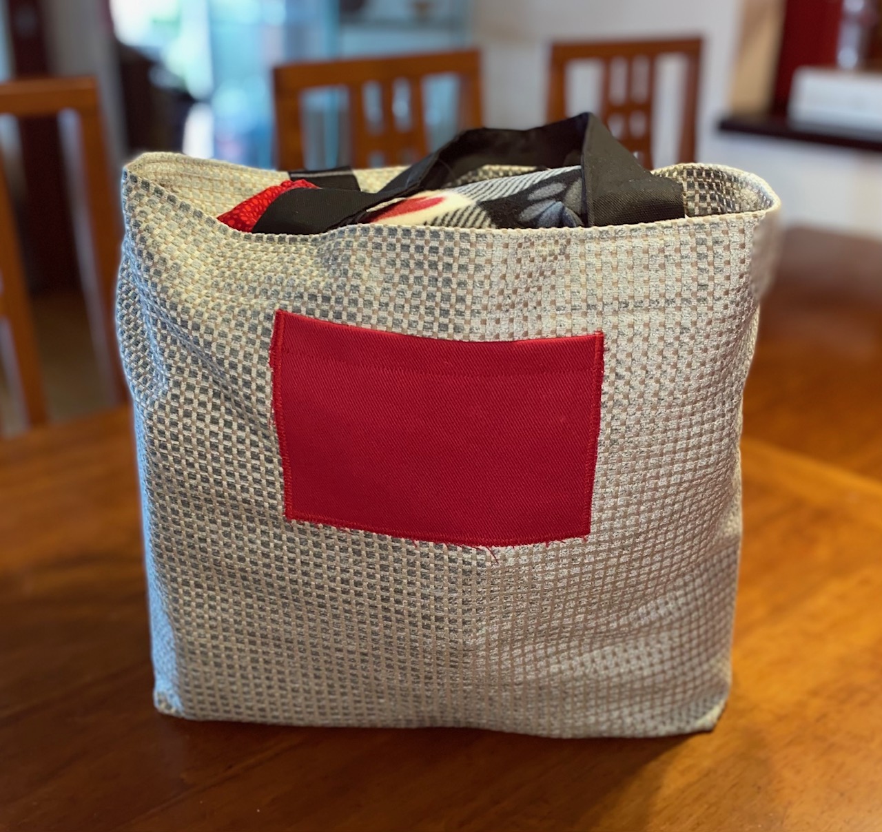 The totes are lovingly handsewn using upcycled upholstery remnants.